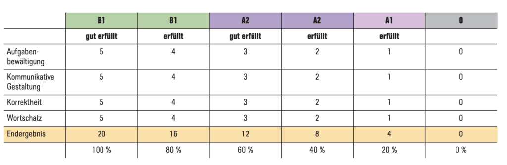 Kriterien für die Bewertung des DTZ-Schreibens